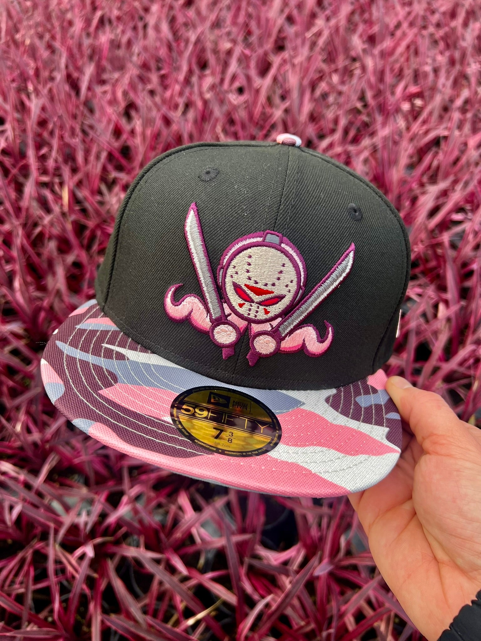 The Dionic "CBF26" OctoSlasher 59FIFTY Fitted is an Limited Edition drop for Valentines Day 2026, and the first Dionic Worldwide drop of the year! This Fitted features the classic Dionic "Octo Slasher" Logo with a black Crown, and a Pink Camo Visor/Button with a Light Grey UV. The Embroidery on this fitted features Pink and Plum Accents to match the Pink Camo Visor. Limited Run!