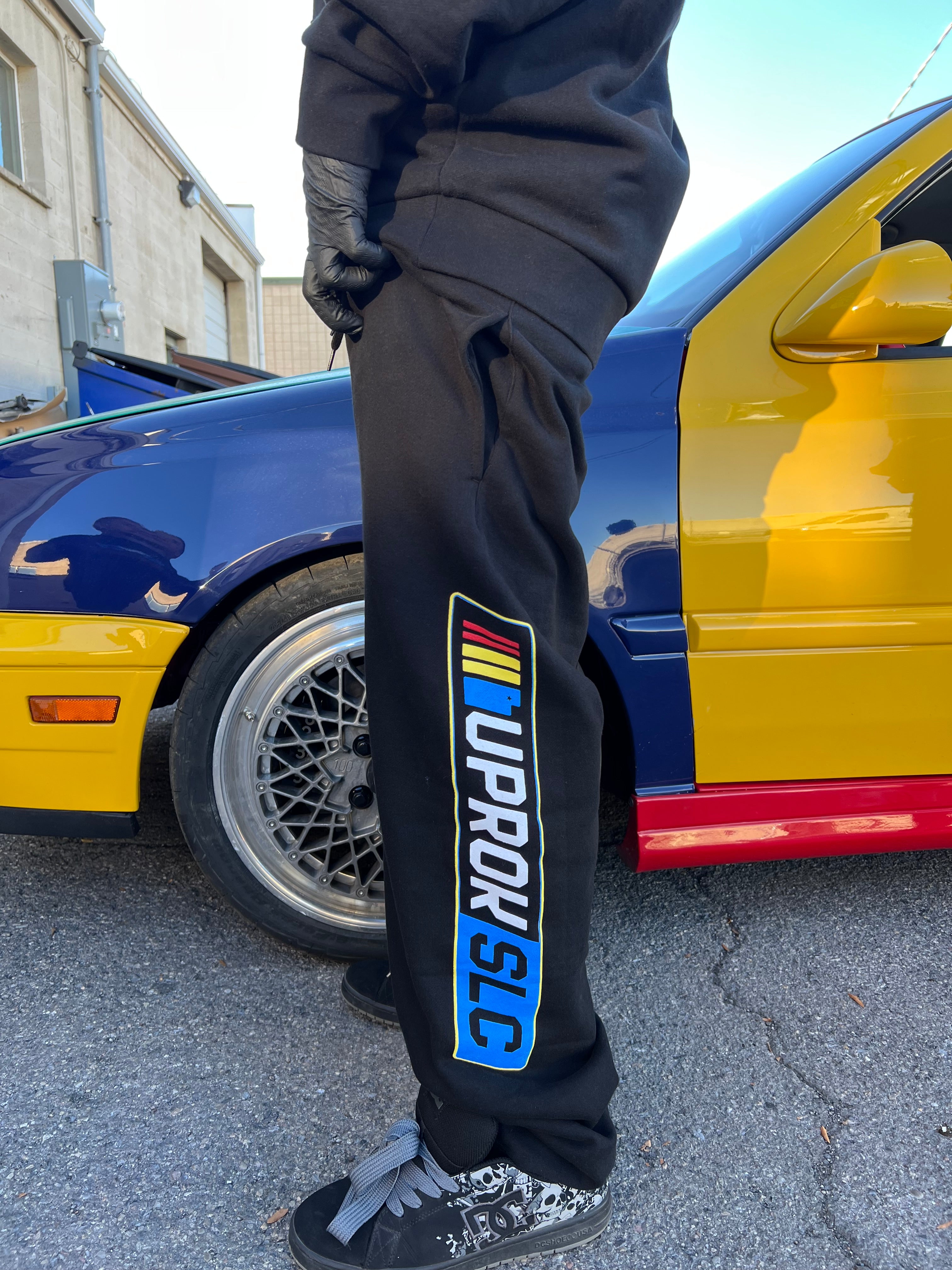 The Uprok "Raceway" Sweatpants features an all new, never before seen Uprok Logo, These Sweatpants features the Uprok "Raceway" logo on the side of both Knees. Limited run. F/W25