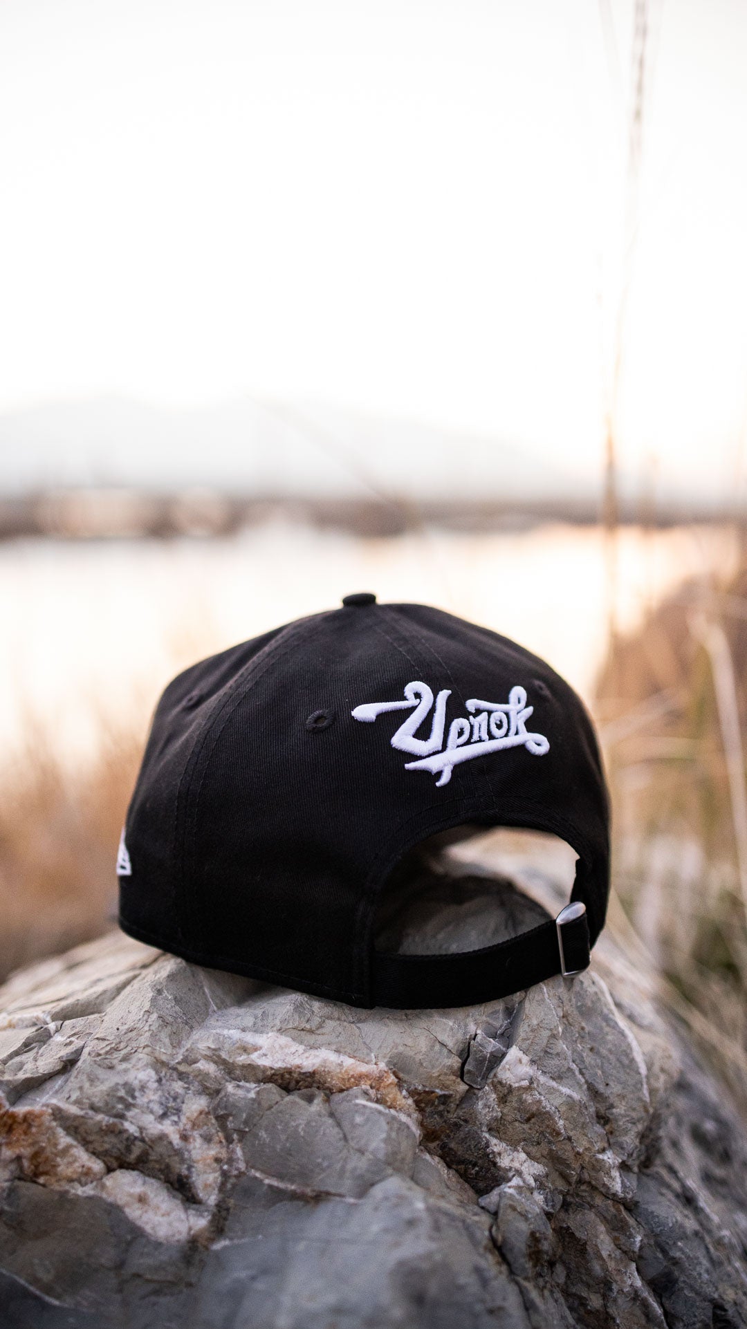 UPROK x New Era 9TWENTY Black Adjustable Unstructured Cap. 100% cotton fabric, One size fits all. "Dad Hat Style Fit"