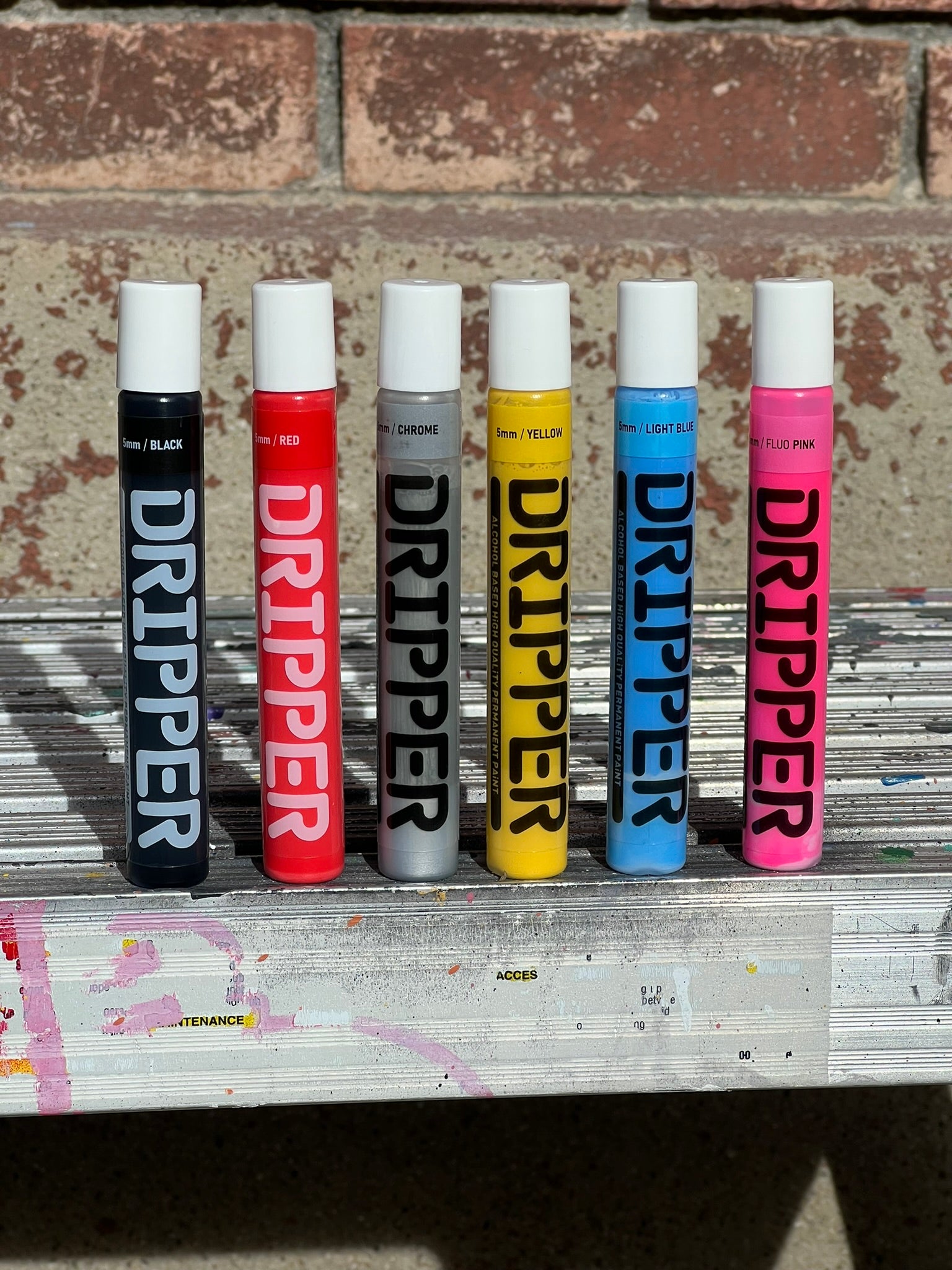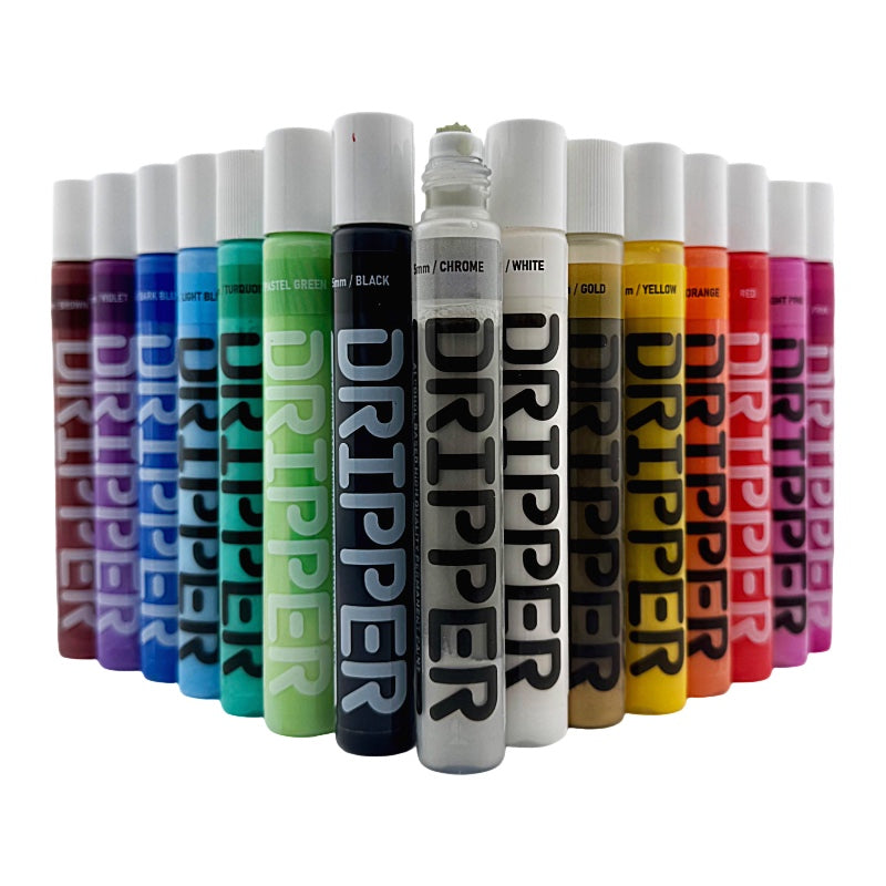 This chunky mop is filled with Dope's alcohol-based Liquid Paint in a wide range of colors. Thanks to the ultra-soft body and durable 5mm nib, the Dripper offers great flow control across surfaces including glass, metal, plastic, canvas and more. Shake well- this formula is pigmented!